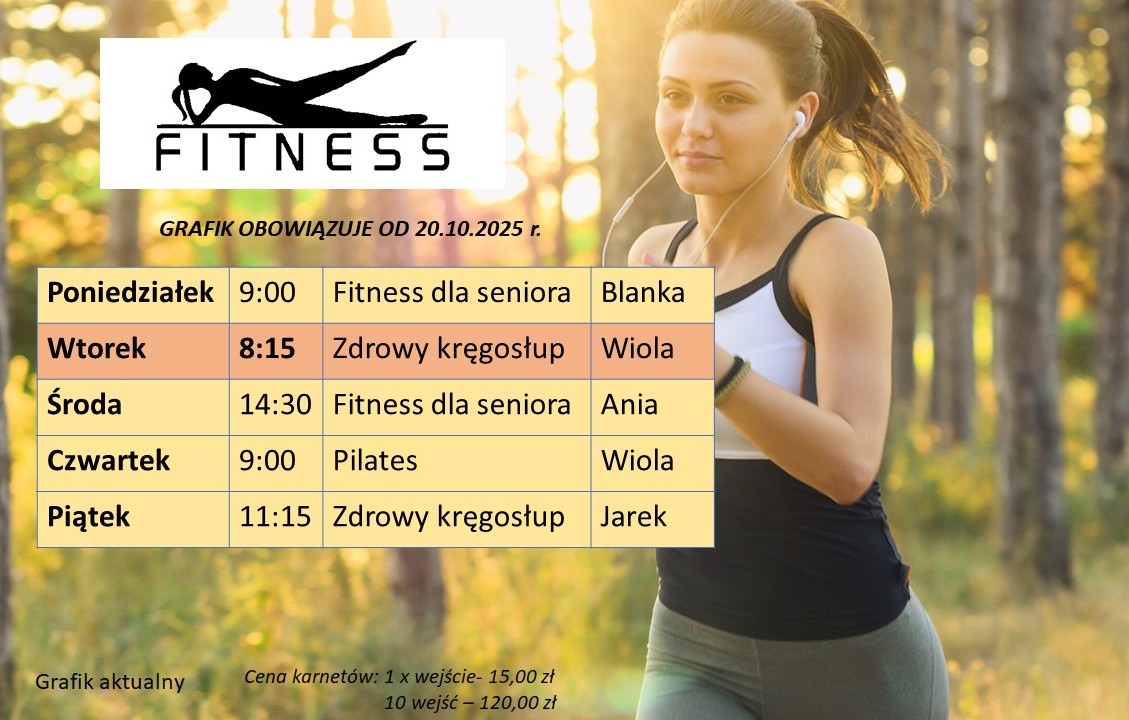 Zajęcia fitness w dniu 03.11.2025 (poniedziałek) nie odbędą się. Przepraszamy za niedogodności.